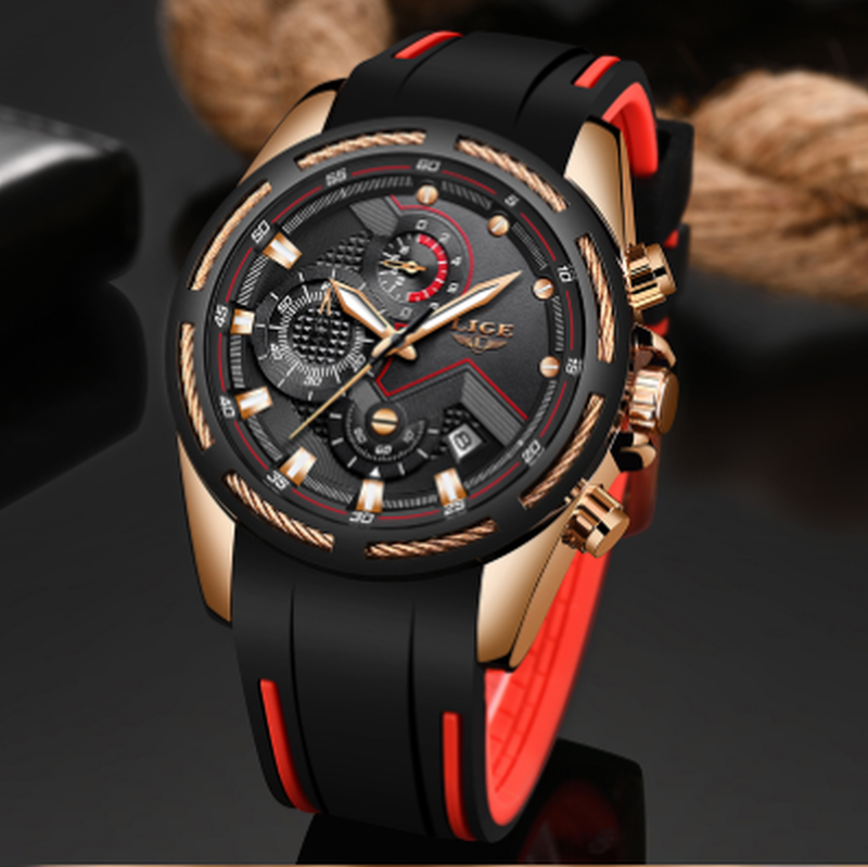 Lige メンズ腕時計 防水 クロノグラフ シリコンベルト 日付表示 クォーツ スポーツウォッ
